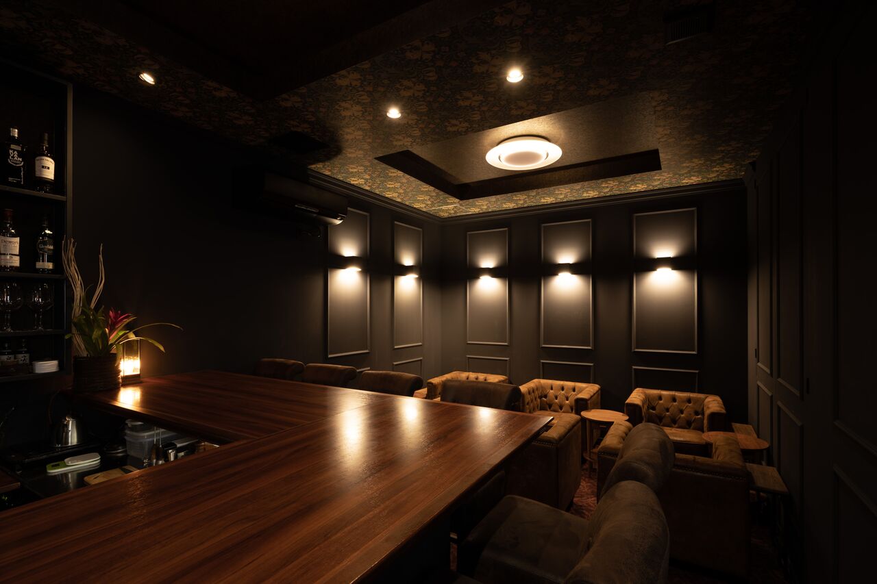 ※チーズ店アレグリアの奥に併設する「BAR月の下」大介さんのこだわりが詰まった店内は、ディティールにこだわったシックな空間