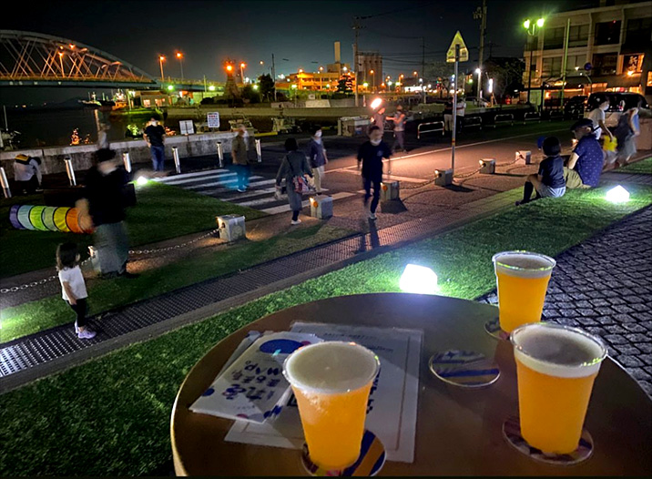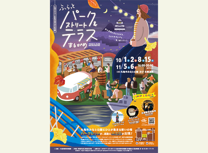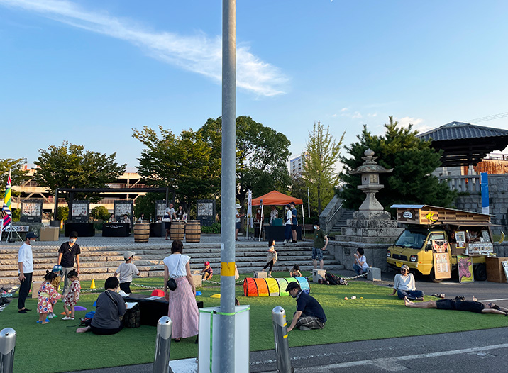 2022年には、みなと公園と市道を活用して「丸亀市パークレットを活用した社会実験」を取り組み、JR丸亀駅北側エリア(福島町エリア)における公共空間の使い方とあり方の検討を始めています。